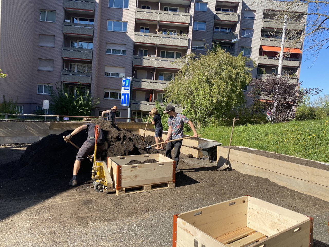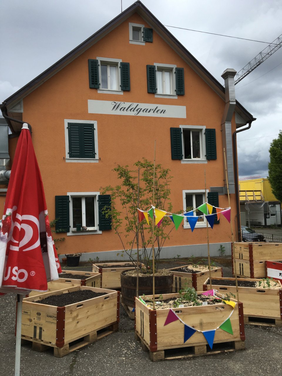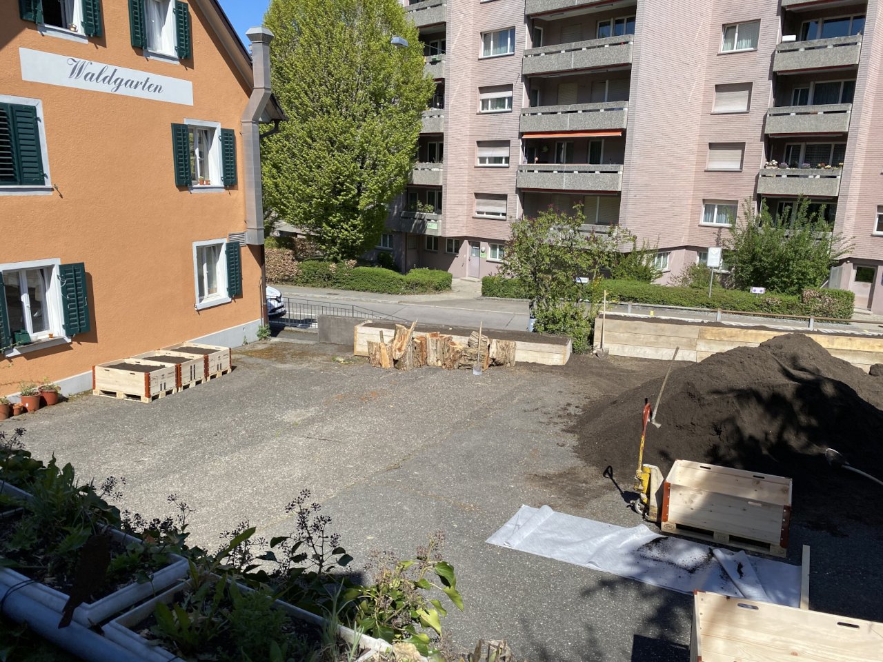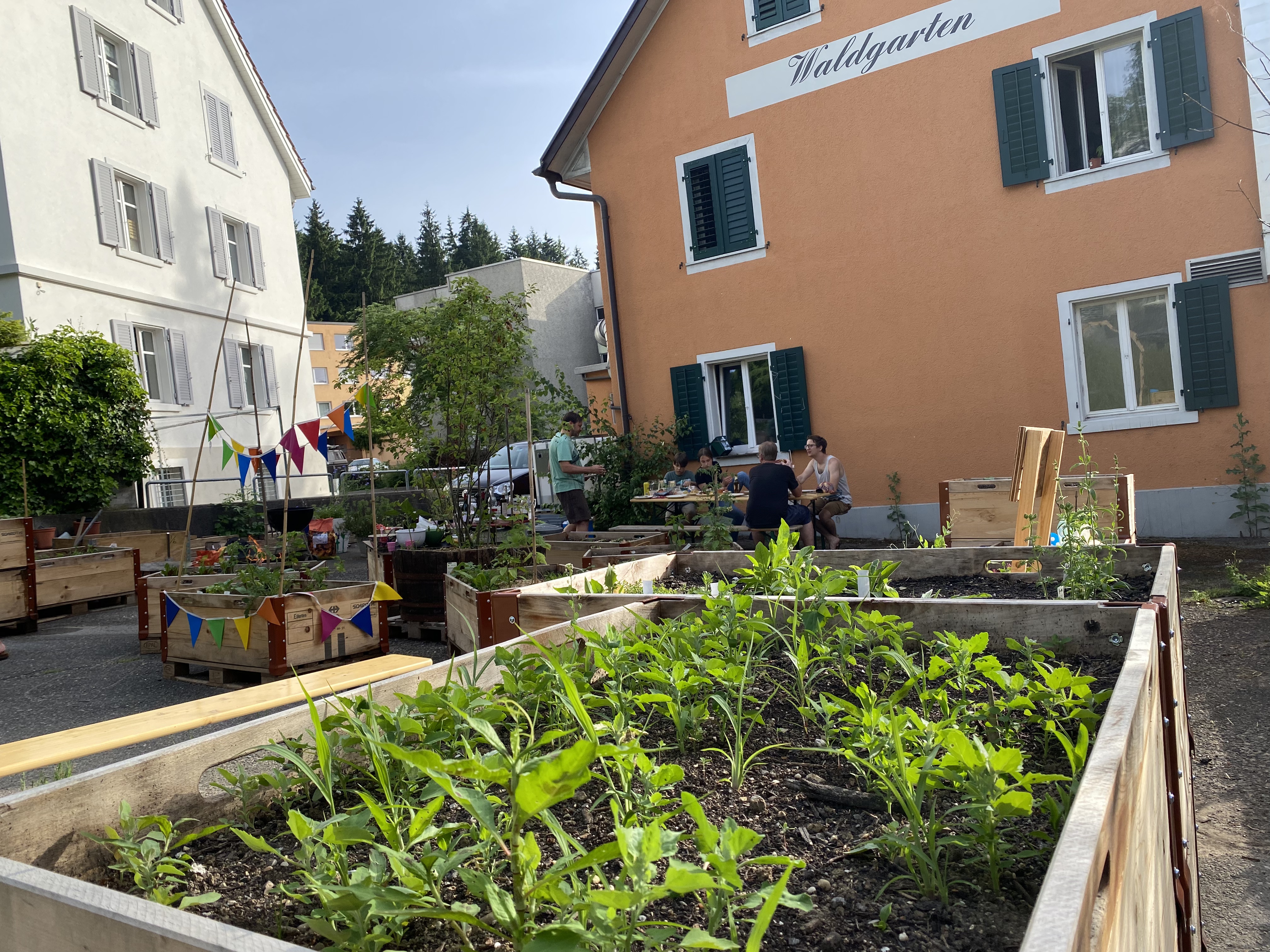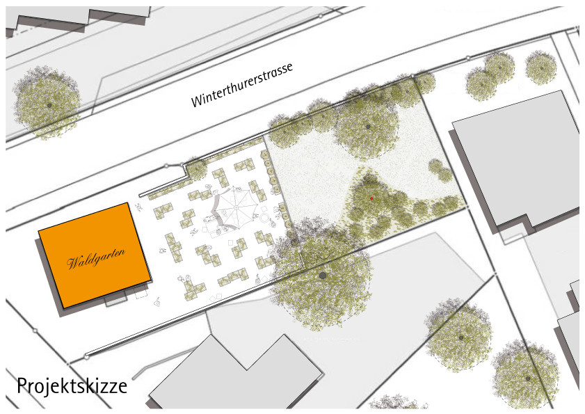 Auf dem Parkplatz des ehemaligen Restaurants Waldgarten möchten wir einen Begegnungsort schaffen, welcher der Quartierbevölkerung das urbane Gärtnern ermöglicht und dazu beiträgt, das Quartierbild zu verschönern. Ein Teil der Bepflanzung soll durch eine permanente Begrünung als Sicht- und Lärmschutz gegenüber der Strasse fungieren. Zusätzlich zu den Pflanzplätzen soll für die Vereinsmitglieder ein Begegnungsplatz mit einfachen Sitzmöglichkeiten geschaffen werden.