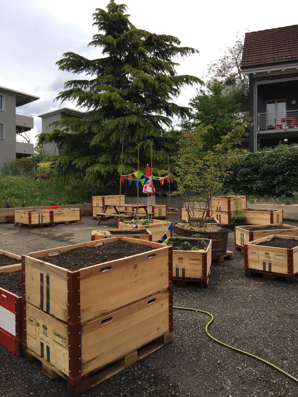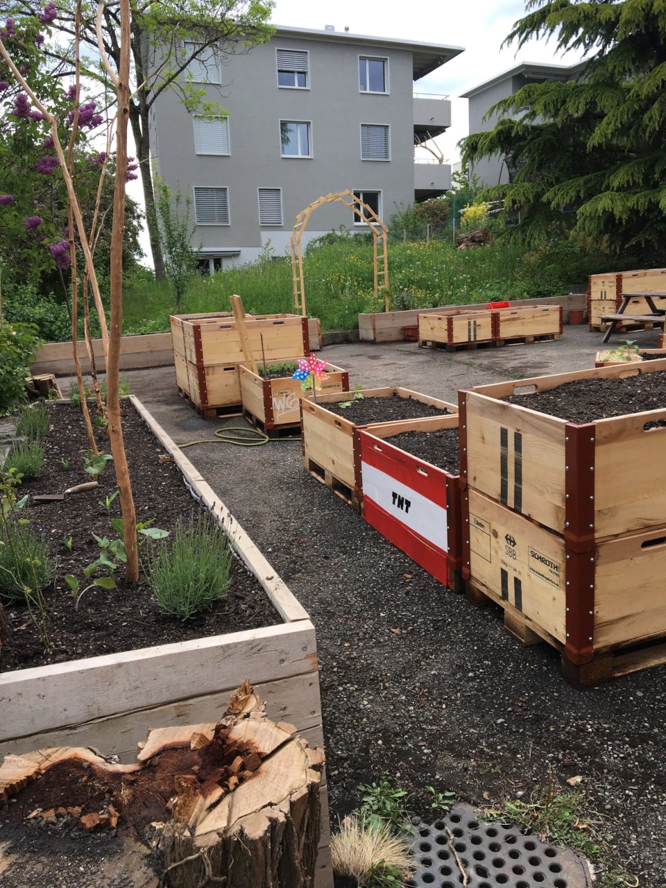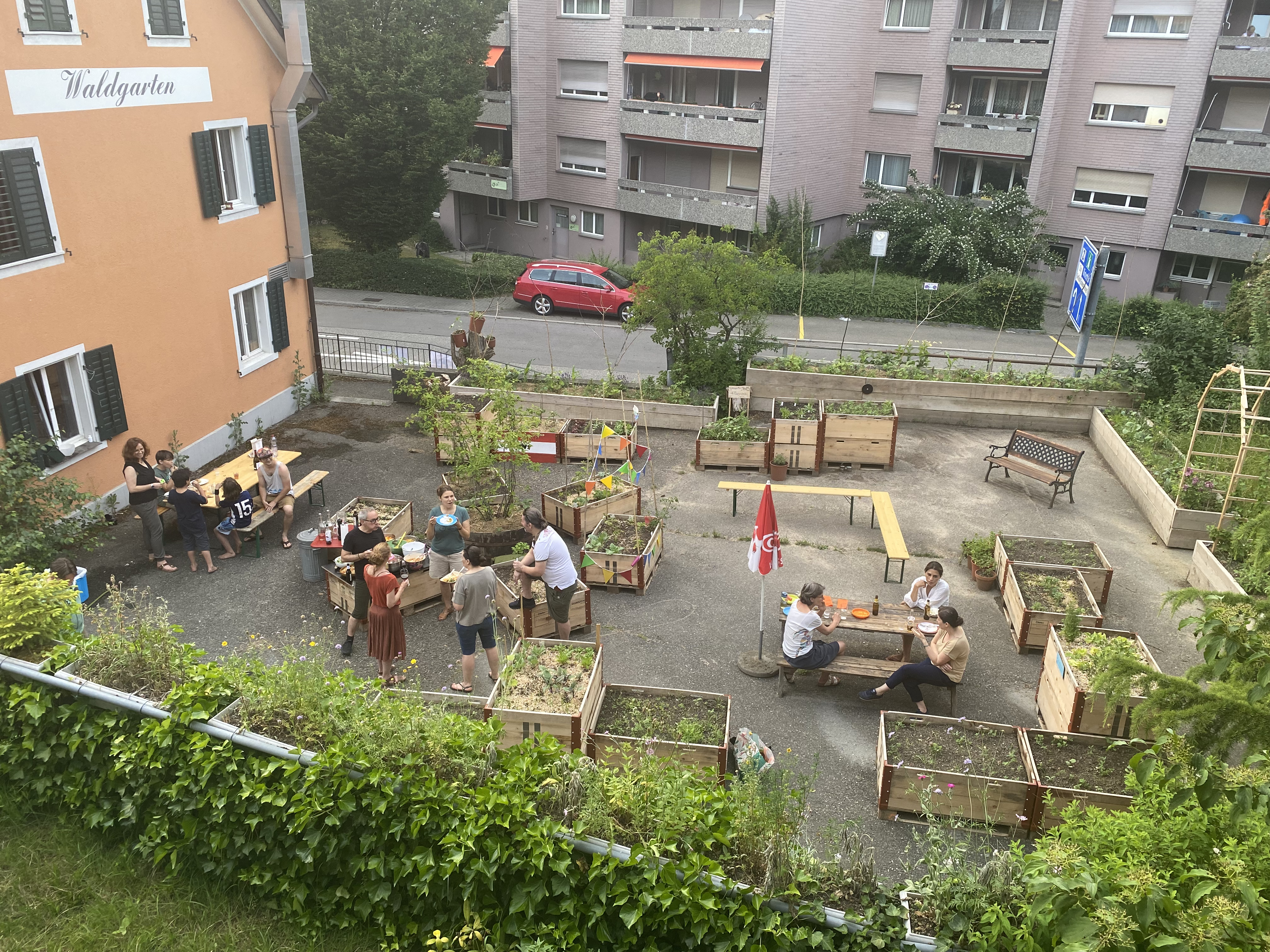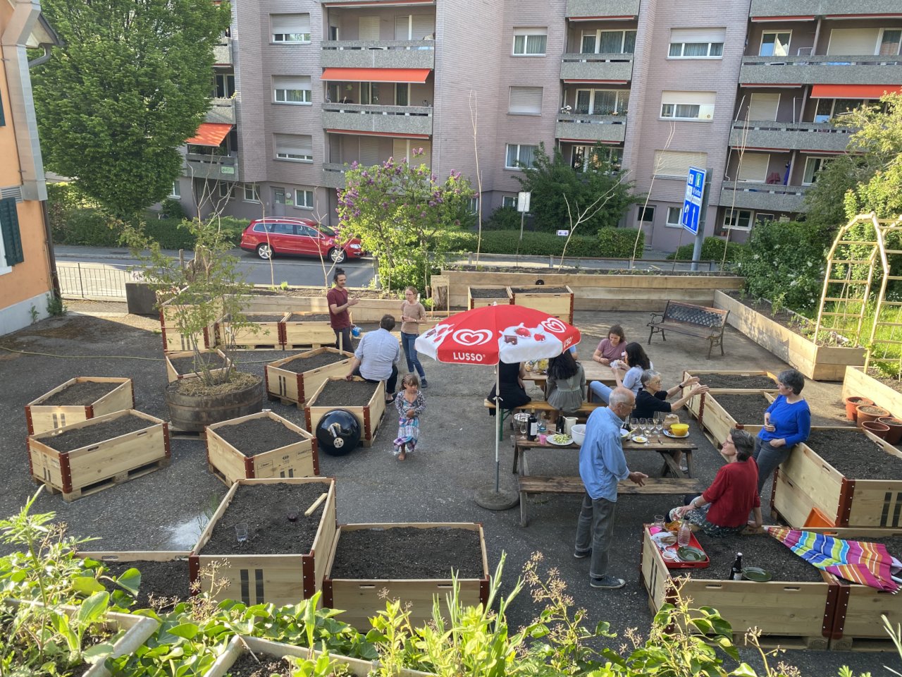 Auf dem Parkplatz des ehemaligen Restaurants Waldgarten möchten wir einen Begegnungsort schaffen, welcher der Quartierbevölkerung das urbane Gärtnern ermöglicht und dazu beiträgt, das Quartierbild zu verschönern. Ein Teil der Bepflanzung soll durch eine permanente Begrünung als Sicht- und Lärmschutz gegenüber der Strasse fungieren. Zusätzlich zu den Pflanzplätzen soll für die Vereinsmitglieder ein Begegnungsplatz mit einfachen Sitzmöglichkeiten geschaffen werden.
